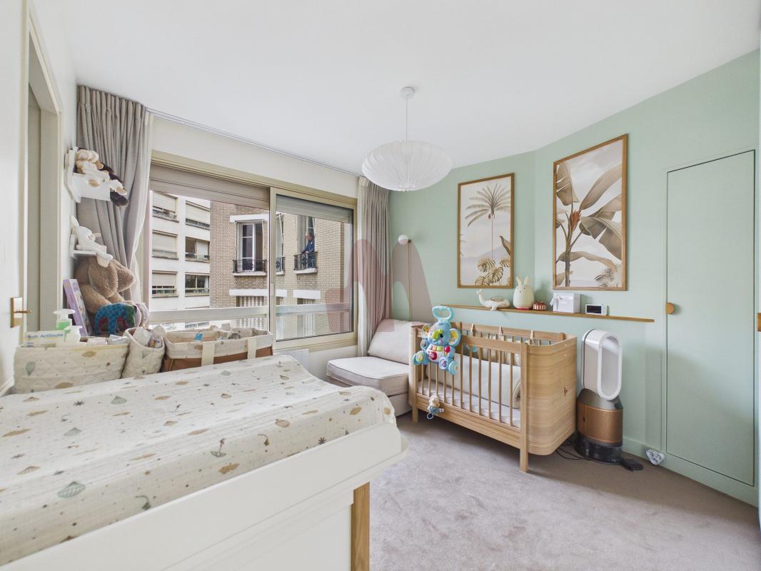 C'est en entrant que vous arrivez en un spacieux séjour de 38 m² baigné de lumière grâce à son exposition sud-est et sa vue dégagée. La présence de 2 baies vitrées y est pour beaucoup dans la diffusion de la lumière. Vous avez alors accès au balcon de 3m² où vous pouvez vous poser avec une vue imprenable sur les Invalides.